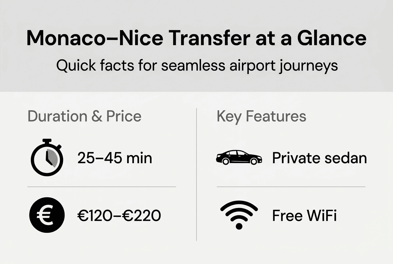 Navigating the journey from Monaco to Nice Airport demands precision and reliability, especially when time and comfort matter most. Business executives, luxury travelers, and those with tight schedules need more than basic transportation. They require seamless coordination, professional service, and guaranteed punctuality. Premium private transfers solve the common challenges of airport logistics by offering real-time flight tracking, fixed pricing, and door-to-door luxury service. This comprehensive guide walks you through every step of organizing and executing a flawless airport pickup, ensuring your Monaco to Nice Airport transfer meets the highest standards of executive transportation.